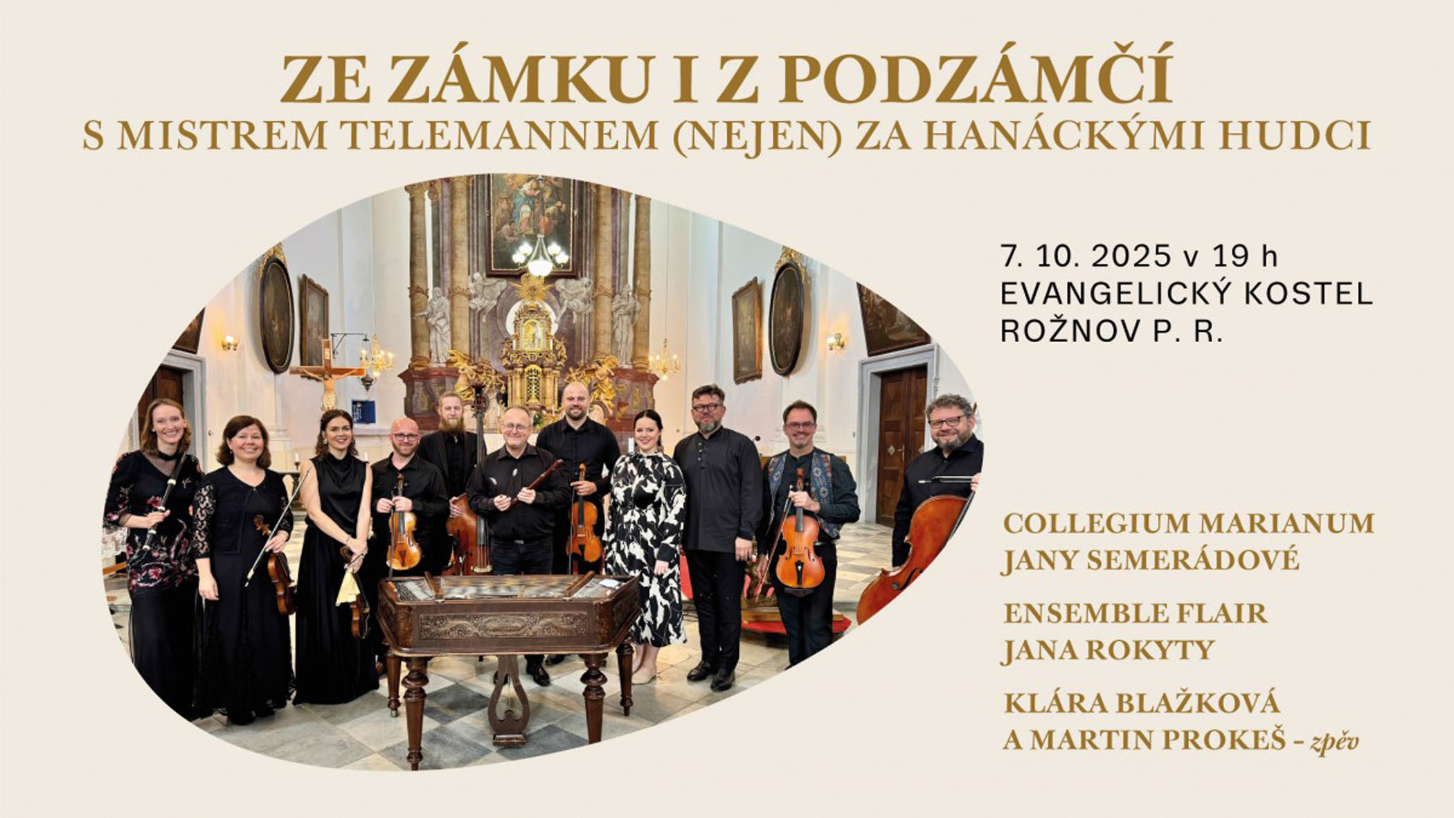 Zazní hudba snoubící v sobě moravskou folklorní muzikalitu s německou barokní přesností Gheorga Philipha Telemanna, v níž si ve společném muzicírování podávají ruce renomovaný soubor staré hudby Collegium Marianum Jany Semerádové s nadžánrovým uskupením Ensemble FLAIR Jana Rokyty