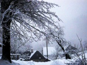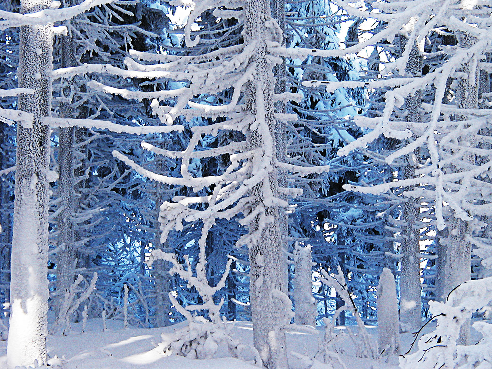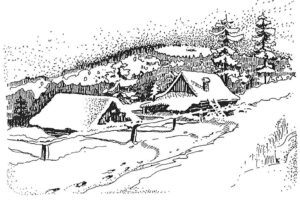 Komín rozdává zasněženým pláním a ztichlému lesu vůni pryskyřice. Sníh se vrší do návějí. Mráz kreslí na sklo ledové květy, štípá a v odrazu hvězdného jiskření rozsvěcuje každou sněhovou vločku.