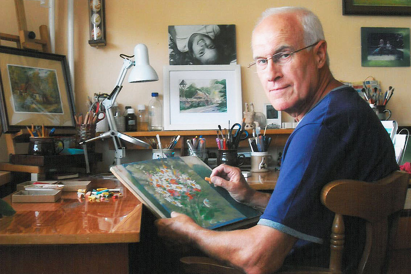 Z počátku jsem maloval obrázky temperou, pak olejem, ale postupem času jsem si oblíbil pastel a akvarel. Maluji hlavně krajiny, uličky a zajímavé budovy. Rád maluji také zátiší s květinami. Všude s sebou nosím blok a dělám si skicy, ty pak doma zpracovávám.