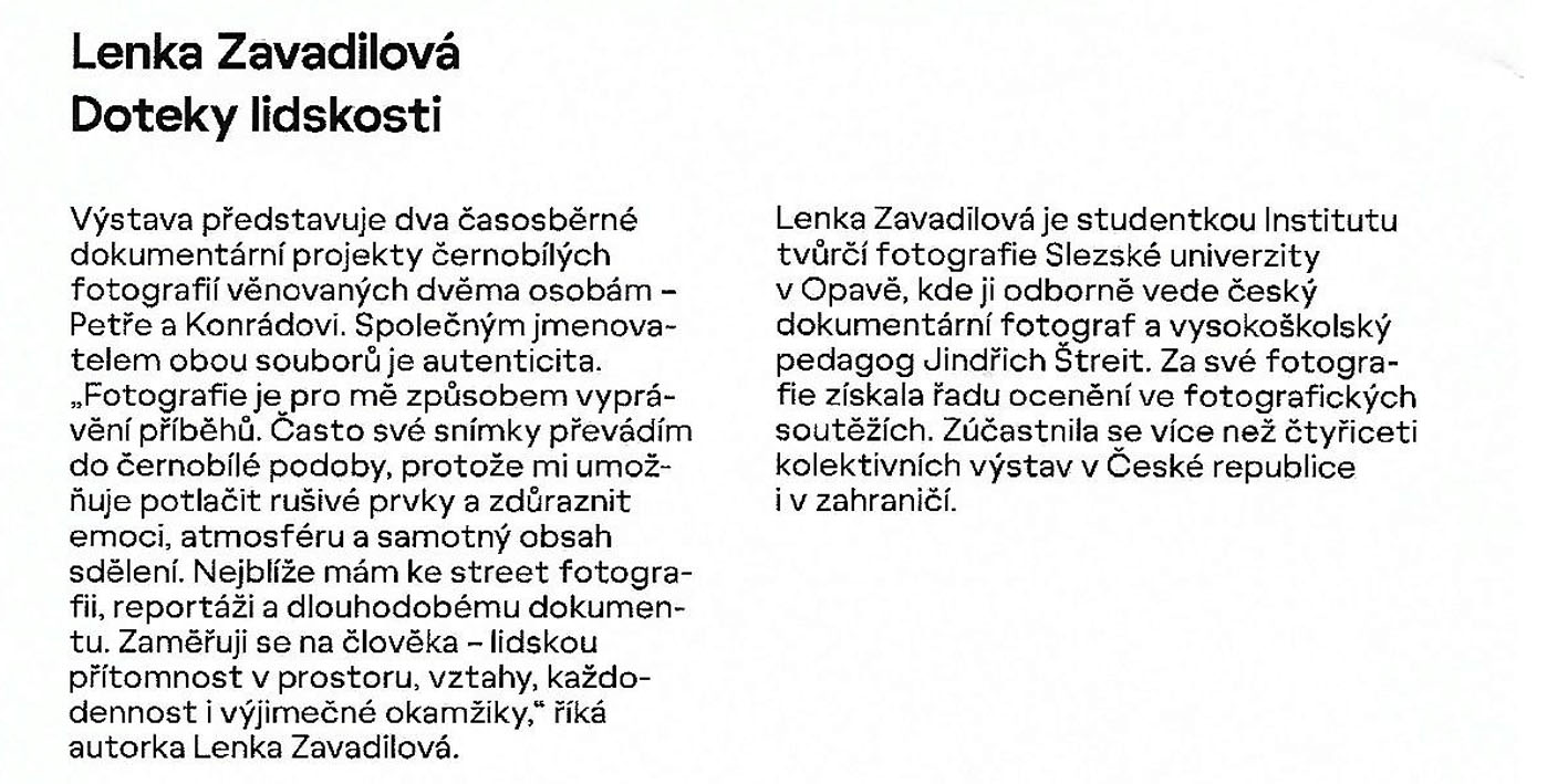 Lenka Zavadilová: Doteky lidskosti 15.4.202623.4.2026 by sb / 0 Galerie Na Radnici: Lenka Zavadilová: Doteky lidskosti. Výstava fotografií 13. dubna – 1. července 2026. Reprofoto Jakub Sobotka