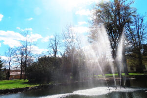 Parkové jezírko i s vodotryskem dotváří poklid a pohodu městského parku.