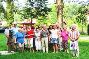 Na společném snímku poznávací vycházka v rámci projektu tvůrčí skupiny seniorů „Město v mé paměti“ při Městské knihovně v Rožnově pod Radhoštěm.